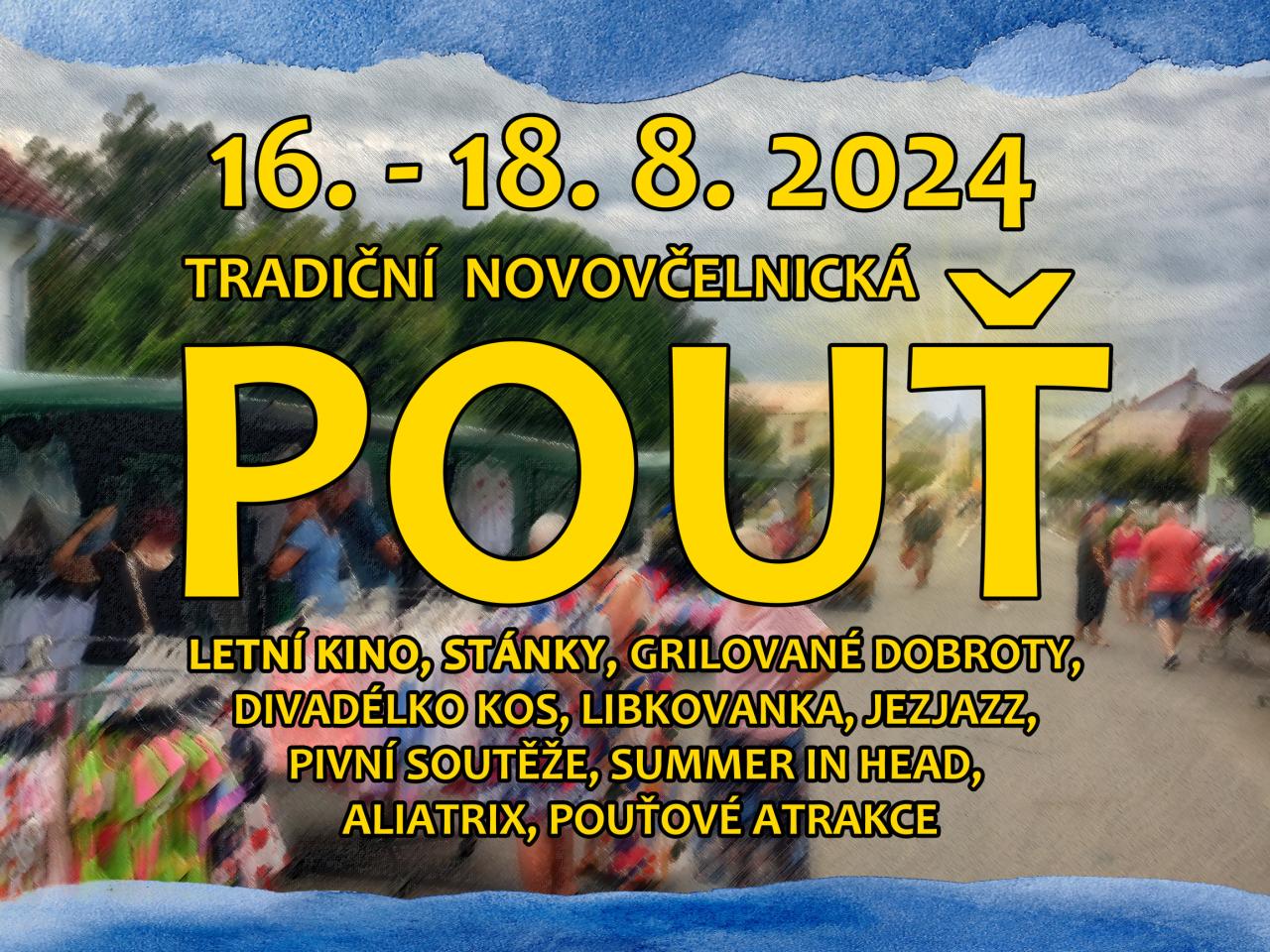 Momentky z Tradiční Novovčelnické Pouťi 2024. Letní kino, Stánky, Grilované dobroty, Divadélko Kos, Libkovanka, JEZJAZZ, Pivní soutěže, Summer in Head, Aliatrix, Pouťové atrakce